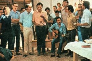 Por otra parte, en medio de la matanza, los militares autorizaron la realización de “shows” dentro de los camarines donde se hacinaba a los presos y también en las graderías a las que se nos sacaba durante algunas horas cada día. Allí nos reencontramos con Víctor y ensayamos la canción “En qué nos parecemos”, popularizada por Quilapayún. La cantábamos a dos voces ante los aplausos de un auditorio literalmente cautivo.